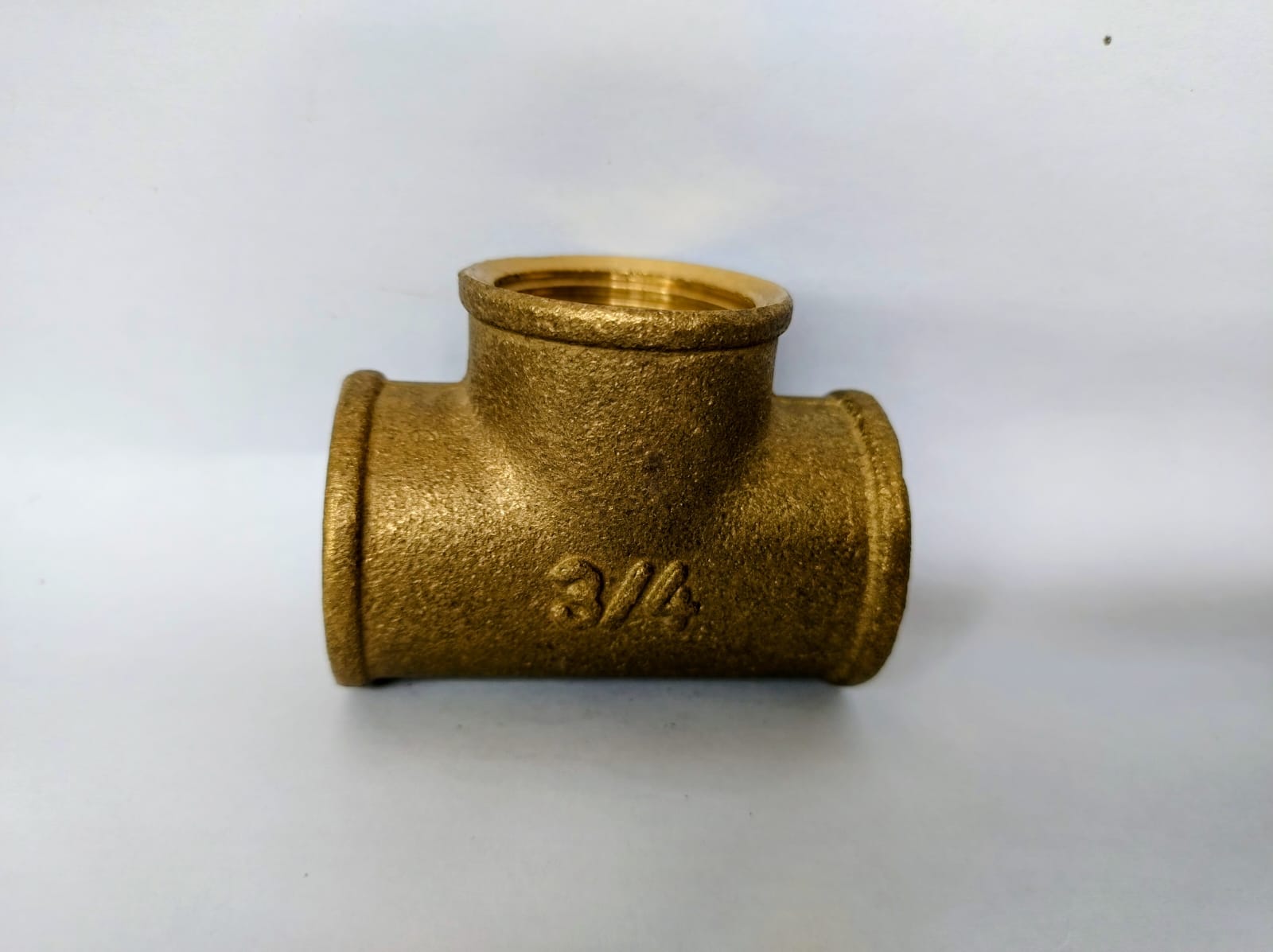 O Tee de 3/4″ em latão BSP é uma conexão em formato de T usado para derivação a 90° em tubulações de água, gás ou ar comprimido, apresentando alta resistência à corrosão